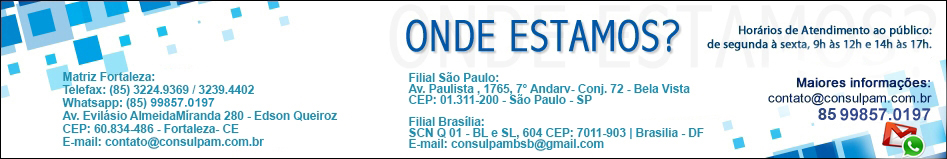 Matriz Fortaleza: TELEFAX (85) 3224.9369 / 3239.4402 WHATSAPP (85) 99857.0197 AV. EVILÁSIO ALMEIDA MIRANDA 280 - EDSON QUEIROZ CEP: 60.834-486 - FORTALEZA - CEARÁ e-mail: [email protected] |